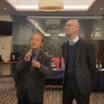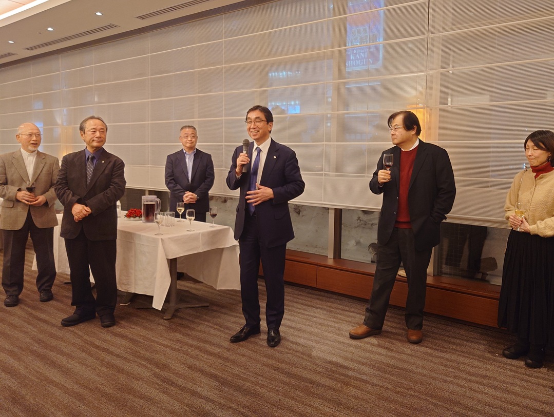 総会の後は懇親会に移り、古野重幸副会長(在札幌フランス名誉領事)の挨拶に続いて参加者が懇親を深め、山本賢正常任理事が協会の発展を期して懇親会を締めくくりました。 (理事長・加藤利器)